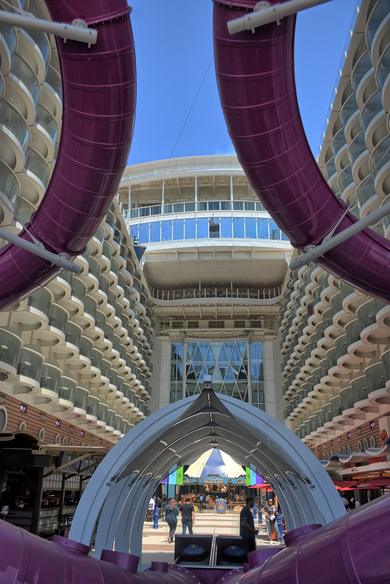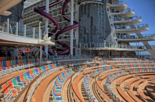 The ship was at sea all day Saturday, headed back for Barcelona. We tried to use a lot of the services of the cruse ship on this day at sea. We had brunch at Mason Jar, then got a large couch chair at the very front of the boat on the top forward deck in the solarium for the afternoon. We descended to the back of the boat and rode the carousel before attending the Aqua 80 water-show, and finally had dinner at the Samba Grill, which is a Brazilian steakhouse at the front of the boat.