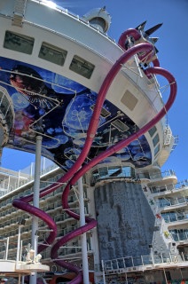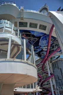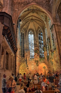 On Monday, the boat was at Mallorca. We walked around the old town, climbed to the top of the Cathedral Basilica Santa Maria de Mallorca, and spent a short time on the beach. We had dinner this night at One Fifty Central Park, where the Caesar salad was prepared table-side, and we ate braised short ribs, crispy pork belly, tenderloin of beef, and fried cheesecake for desert. We went to the Blue Planet show after dinner. While most of the shows during the cruise were very good, the Blue Planet show seemed disjointed with no connections between acts. The performers were all very good, but the show itself did not flow. It was our least favorite show of the cruise.