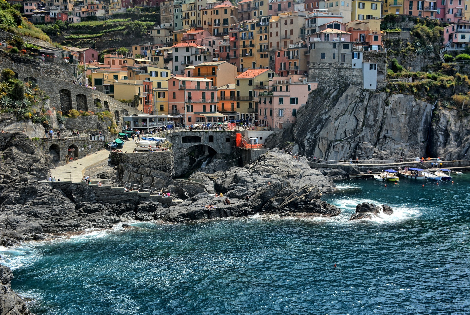 We have visited Cinque Terra on three other trips to Italy and love it. Chris jumped off these rocks at the harbor in Manorola in August 2015 and jumped again on this trip. See the video below for the jump from this trip.