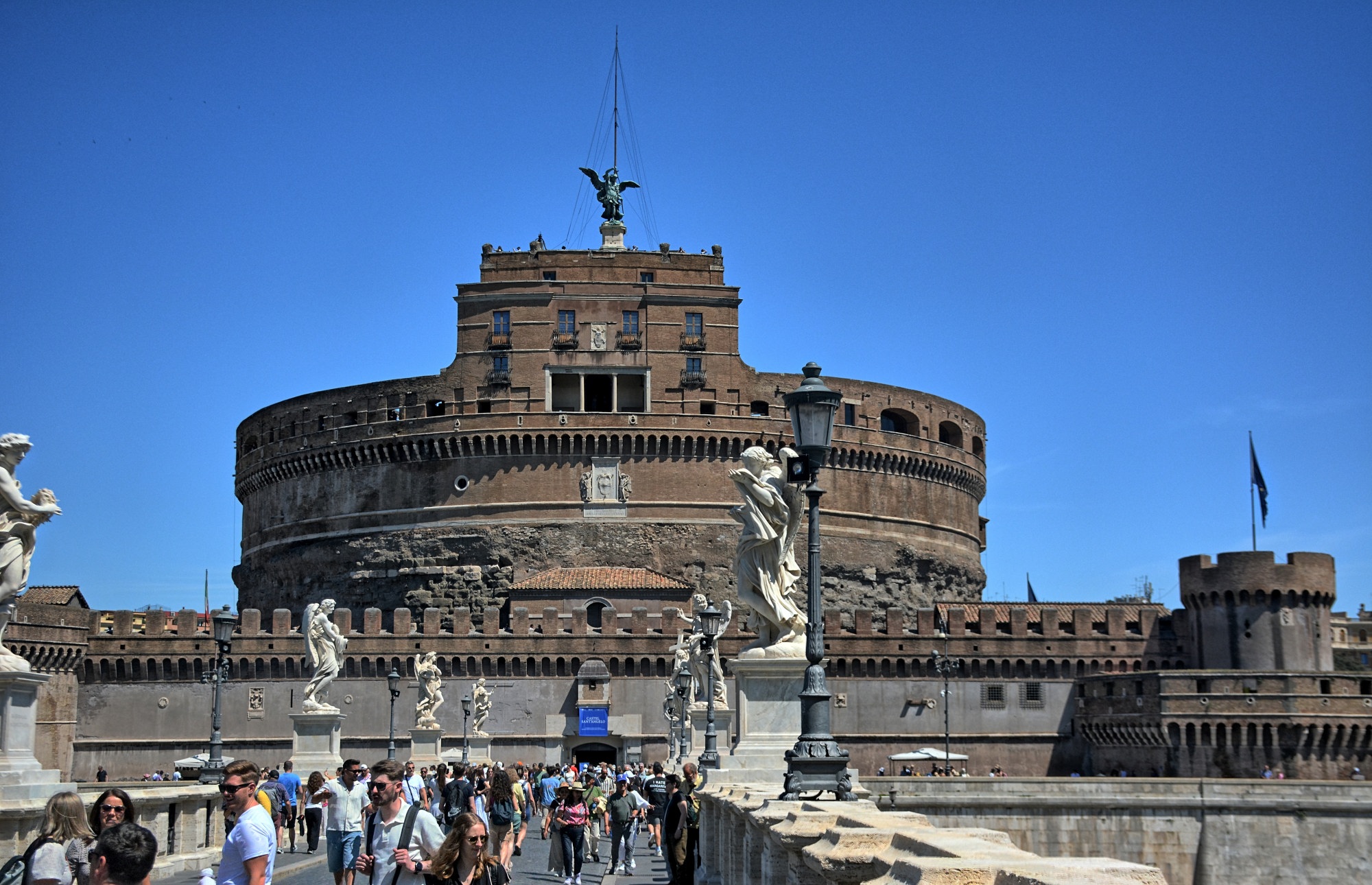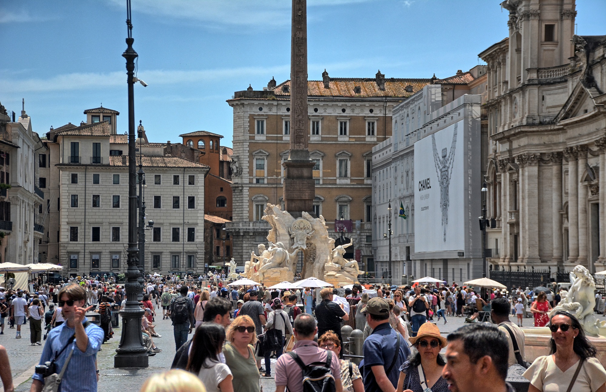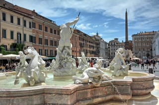 On Thursday, the boat was at Civitavecchia, the port of Rome. We took the train from Civitavecchi to Rome, and walked around Rome all day. We visited Vatican City, Piazza Navona, the Pantheon, Trevi Fountain, the Roman Forum, and the Colosseum. We had a shorter time period in Rome than we had hoped, so we were not able to see everything we wanted, but it was still a nice day trip and we managed to go to many of the places we had last visited in 2015. We walked across the Ponte Sant’ Angelo and into Saint Peters Square at the Vatican, then back across Ponte Vittorio Emanuele II and east through the city, stopping several times for drinks and snacks at cafes as we walked along the pedestrian streets. Everything in Rome is built on land that has been continuously inhabited for 3000+ years, so it is all built on top of older buildings. One of the cafes had a stairway descending to the bathrooms, with ancient Roman architecture visible on the stairs and in the basement. Rome was super busy everywhere we went; much busier than the last time we visited Rome in 2015. We ate at Chef's Table this evening; the food was incredible.