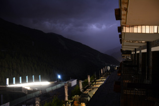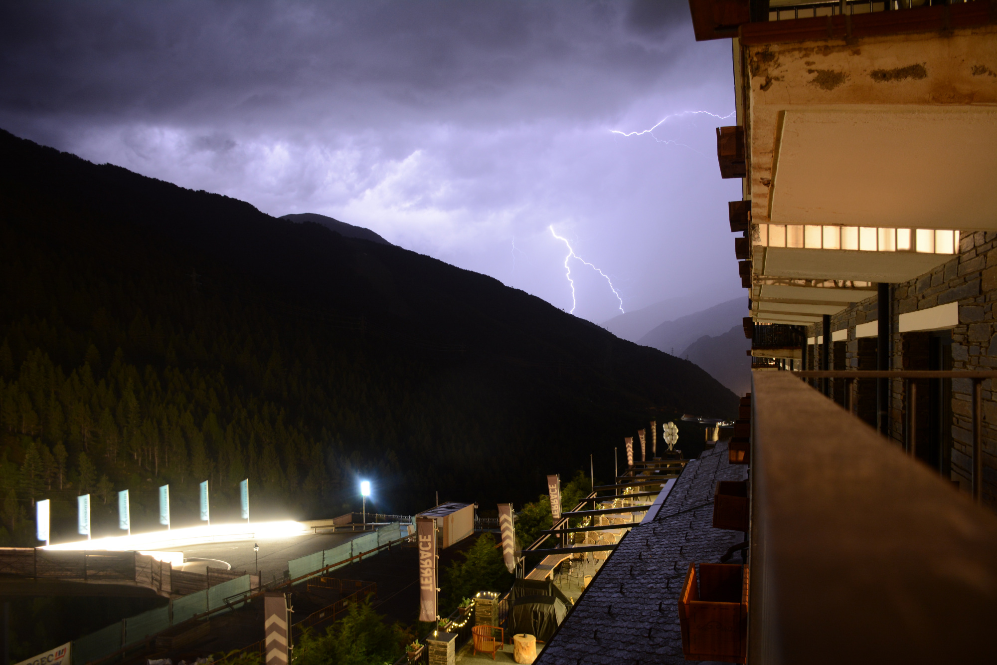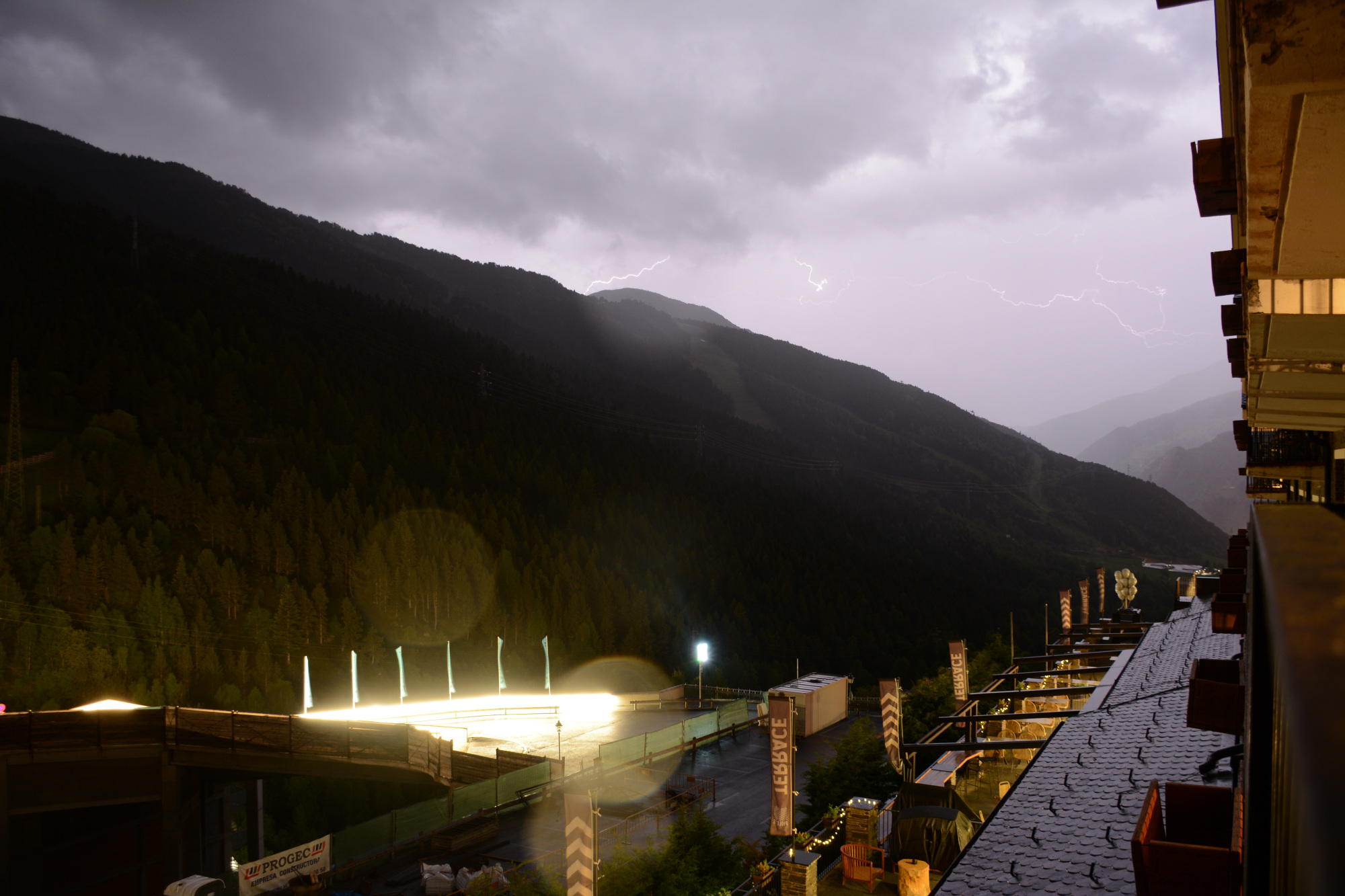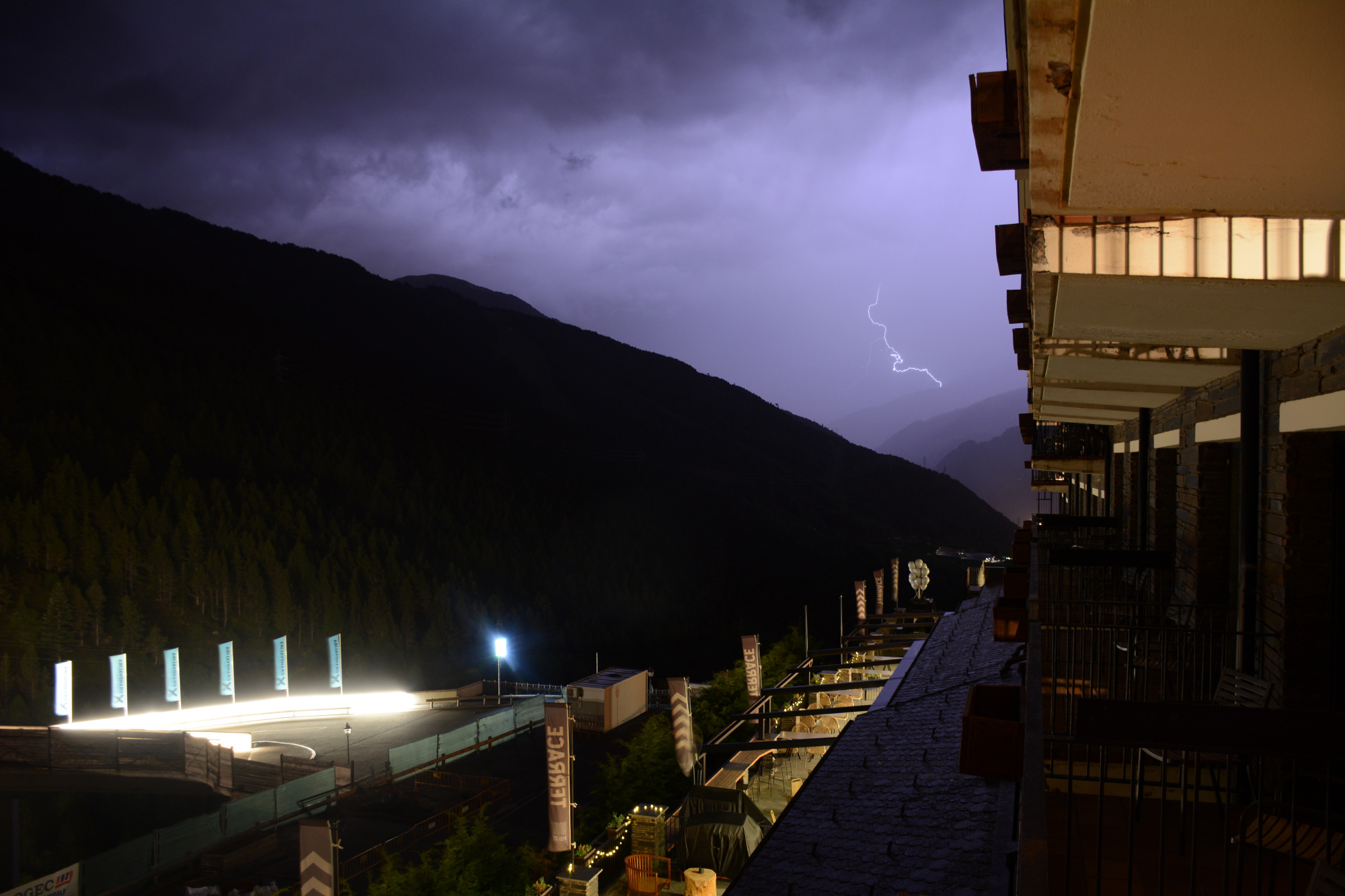 This was our route for the next 10 days of driving. We drink a lot of Freixenet cava, which is Spanish champagne, so we drove west and north from Barcelona to Sant Sadurni d’Anola, planning to visit the Freixenet winery. Unfortunately, that winery was closed, so we visited the nearby Codorniu winery and bought a case of cava to drink over the next week. We continued north through Spain and spent Sunday night in Andorra in the Pyrenees Mountains. Chris went hiking in Andorra on Sunday afternoon and flew his DJI quadcopter in the mountains near our hotel to get aerial video. He also flew his quadcopter later in Saint Emilion and Sauternes for more aerial video. There was a thunderstorm that evening in Andorra, and Chris captured some lightning photos.