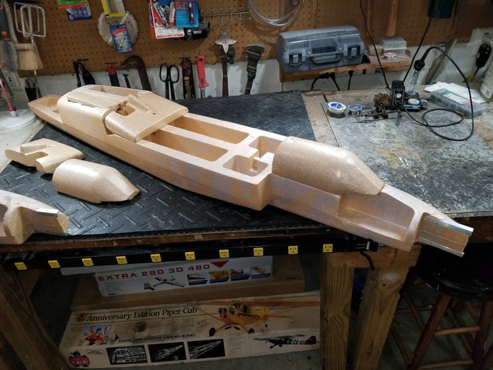 Mini Funtana - Moving to Texas - Donated to RCMB Member A friend crashed his Hangar 9 Mini-Funtana and gave me the wings and empennage. I built a new fuselage from scratch and bought a cowl for $6 on eBay. This is powered by a Tower Pro 2908-10 outrunner with a 40A ESC, and I have an Orange 6ch stabilized receiver in it. Five channels [ rudder(1 servo), elevator(1 servo), ailerons(2 servos), throttle(ESC), stabilizer on/off ] |