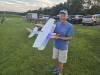 Member Scratch built fuselage and wing, and a Mini-Ultrastick tail. Originally this plane had two electric motors; twin rewound 2410-9 outrunners with 18A ESCs. It is now powered by a single Detrum BM3715A 900kv outrunner with a 40A ESC. It contains hundreds of LEDs for night flying, shown illuminated to the right. Four channels [ ailerons(2 servos), rudder(1 servo), elevator(1 servo), throttle(ESC) ] The new owner at RCMB is shown in the bottom left photo. |