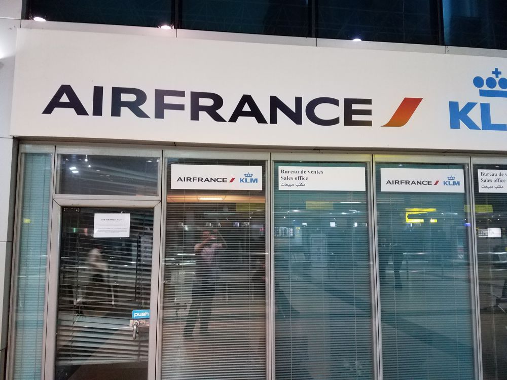 The airport rep finally re-appeared much later and told us that he had rebooked us on the next Air France flight out, the following morning. We had never asked him to do any of this, he just did it. There was a problem with this rebooking though, as he told us we would have to pay change fees to get on that next flight, and the Air France ticketing office in terminal 1 was closed. We took this photo of that ticket office in terminal 1 after security denied us entry and we had been waiting for a while; this photo was taken at 7:12 AM local time. The office was closed, even though it said it was open from 7 AM to 3 PM.