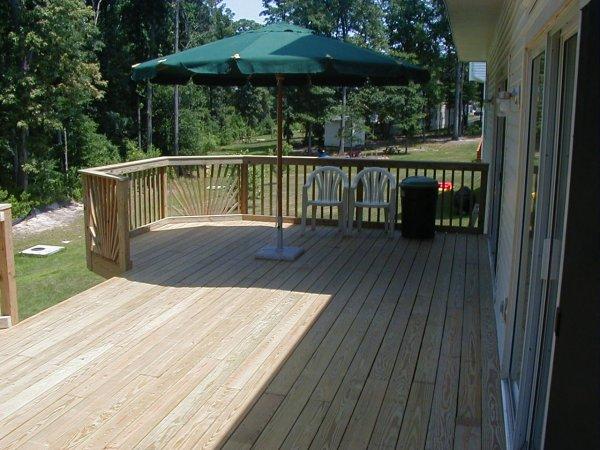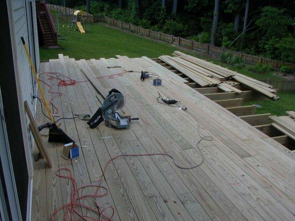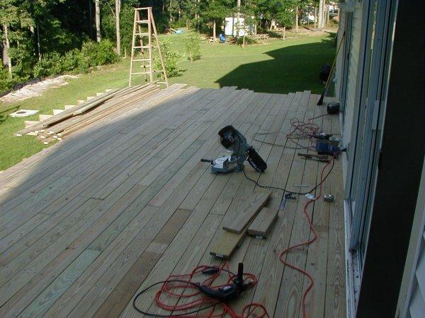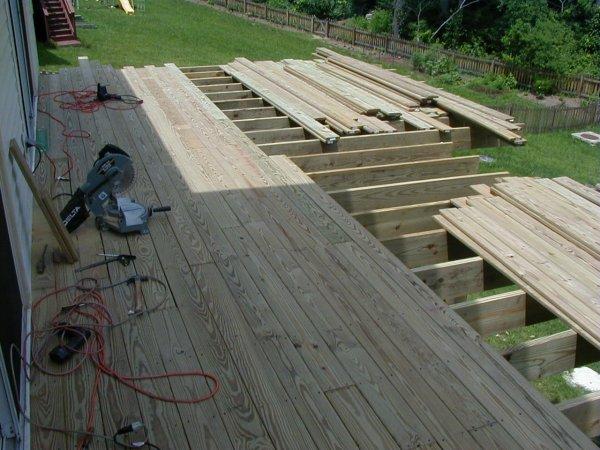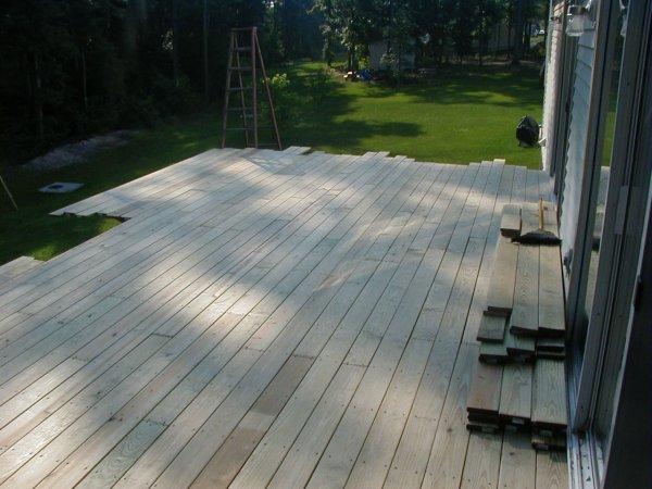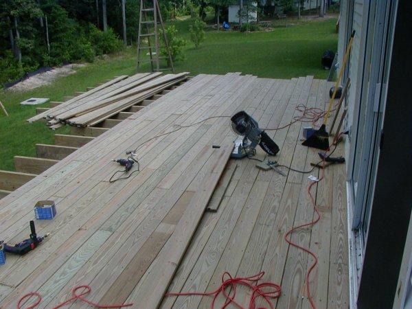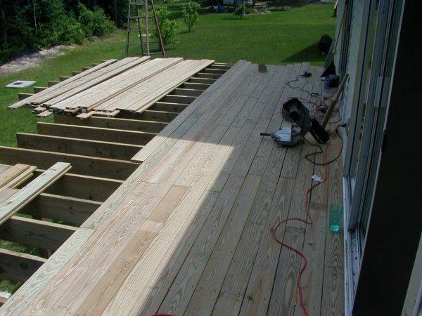 Thompson treated 5/4 x 6 decking for the whole deck. |