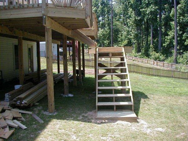 | After all the stairs were in place (see below), we attached posts and railings. | ||
