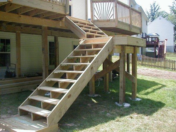 | Anne Arundel county code calls for closed risers, so that was the last step. Each step has a kick plate, which makes the riser closed. These were attached with more hardware behind the kick plate, so there are no visible nails or screws here also. | ||