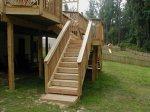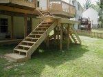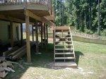 | With all the railing in place on the main deck, we began construction on the landing. It sits on 6x6 posts, 2x10 beams, and is about 8 feet square. | ||