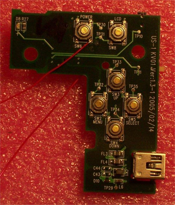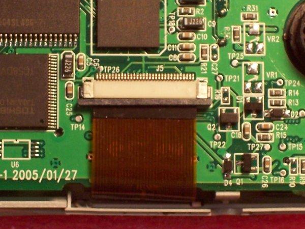 2. The main board is attached to the LCD screen, so carefully remove the ribbon cable to LCD screen from the main board by sliding the connector apart and pulling the ribbon cable out. Carefully take out the main board, and don't lose the plastic button insert on the side or any of the screws you have removed. You will do the same steps in reverse to put everything back together. |