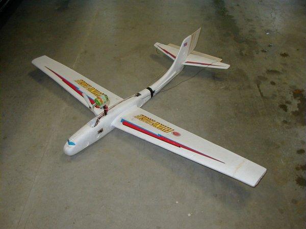 servos, GWS R-4P nano-receiver, and various small battery packs. What to put them on? Guillows makes a 4.5 foot wingspan foam glider for