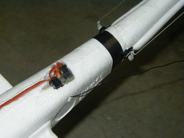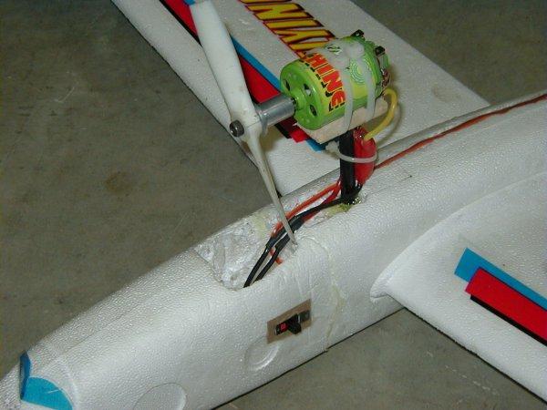 is strapped to the pylon, and I balanced the plane for the battery by making a large hole