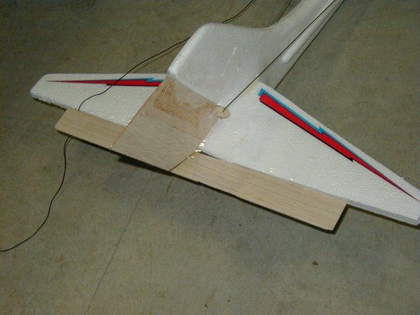 and bottom, I taped 1/16 balsa across the back as an elevator with a 1/16