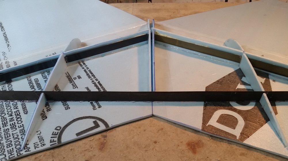 Action - Yuma, AZ This was the first foam wing that I built from my own design. I had taken this wing all over the country whenever I went on travel for work, and I eventually left the wing at my company's flight test hangar in Yuma, Arizona. It disappeared from that hangar after several years. The photos below show the construction of this wing and a copy that I made for a friend.