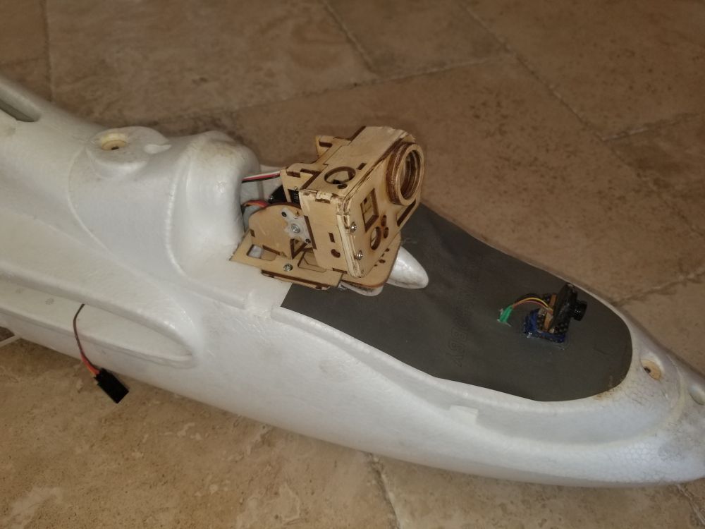 Penguin FPV - Moving to Texas - Sold to new owner from Pennsylvania EPP foam fuselage. I bought the airframe at the Westminster MD swap meet, and installed electronics I had at home. RMRC happened to be having a sale on the clear canopy the week after I bought it, so I ordered that and had it quickly. After test flying it without an autopilot or FPV gear, I added the flight controller and all the FPV equipment. The wiring diagram shows how everything is connected. It is powered by a 500 size outrunner and 50A ESC. Seven channels [ throttle(ESC), ailerons(2 servos), elevator (1 servo), rudder(1 servo), front camera pan(1 servo), video switch, flight controller modes (2 aux channel) ] The new owner is shown to the bottom with the Penguin and Racer 250 quadcopter, which I gave him. GoPro/Gear360 mount under the clear canopy Flip32 F3 flight controller / MWOSD 2.0 AIO flight controller, 5V input, manual - flashed and configured iNav 2.6.1 via USB - BMP280 baro pressure sensor added to FC via I2C - flashed and configured MWOSD 2.0 via USB with MWOSD 2.0 Configurator - COM1: MWOSD (shared with USB) - COM2: GPS - COM3: Crossfire uplink commands, downlink telemetry Crossfire Micro Receiver - use TBS LUA scripts to configure Rx output channels - Rx channel 1 & 2 : Crossfire Tx/Rx - Rx channel 4 : SmartAudio - controls video transmitter via Crossfire LUA scripts on TX16S transmitter - RC channel 8 is set to output Crossfire LQ/RSSI as signal, flight controller reads channel 8 for RSSI in video overlay AKK 800mw 5.8GHz Video Transmitter - SmartAudio is connected to Crossfire receiver to allow video transmitter control from TX16S transmitter Pan & Tilt Gimbal for GoPro Hero 3 - mounted under clear canopy LC filters uBlox GPS 3-Way Video Switcher - camera input selected by aux channel from transmitter - camera #1: front 5V camera on azimuth/pan servo, under clear canopy - camera #2: fixed belly 5V camera looking down, under clear dome - camera #3: fixed tail 5V camera on top of vertical stabilizer |