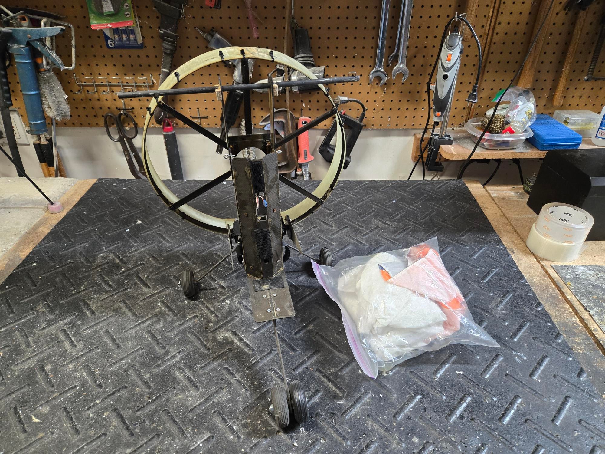 Paraglider Body & Canopy - Moving to Texas - Gave away to flyer from Pennsylvania I built this carbon fiber body with servos, motor mount, prop shroud, landing gear, and battery holder to go with the HobbyKing V1 paraglider canopy. . |