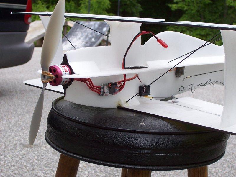 Foame IIx 3D Biplane - Built from plans at 3DBatix.com to 86% plan size, 3mm Depron, Typhoon 6/20 brushless motor w/ Tsunami 10A ESC, four channels [ailerons(1), elevator(1), rudder(1), throttle(ESC)] FLOWN - retired | |