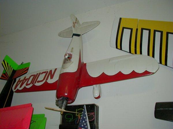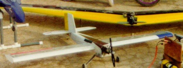Goldberg Electra : I have built at least four of these over the years, crashed one and sold the others in flyable condition. The second picture to the left shows an Electra that I built in 1989, which was still hanging up in a hobby shop in Colorado Springs in 2013, over 24 years later. I can not compliment this plane enough. I have used it to teach several people (including myself) how to fly. It has simple construction, is available everywhere, will use any electric motor, and is easy to fix and fly. 3 channels [elevator(1), rudder(1), throttle(1)] SOLD |