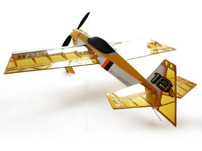 | Extra 330 - Another plane from plans at 3DBatix.com. I also added blue LED strips so I could fly it at night. 6mm Depron, A22-10S, 10 amp ESC, four channels [ ailerons(1), elevator(1), rudder(1), throttle (ESC) ] FLOWN - retired | ||