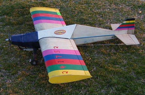 Tiporare - Fiberglass fuselage, homemade foam core wing and stab. OS 61 RF w/ pipe, eight channels [ left aileron(1), left flap(1), right flap(1), right aileron(1), elevator(1), rudder(1), throttle(1), retracts(1) ] crow flaps & ailerons, mixed elevator->flaps, flaps->elevator, ailerons->flaps. SOLD |