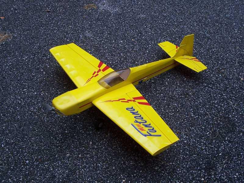 Fliton Flubber - I won this plane in the "How mangled did you go?" contest at RC Universe, for the crash picture and story of my Conniption II above. I flew the plane for about a year and then moved on to smaller electric 3-D planes. Speed 400 geared drive, 12 amp ESC, R-4P rx, four channels [ ailerons(2), rudder(1), elevator(1), throttle - esc] SOLD |