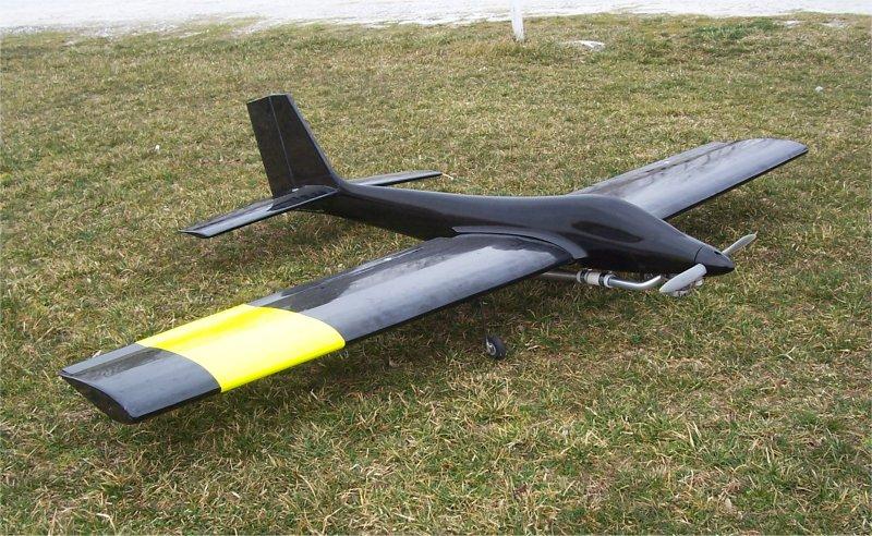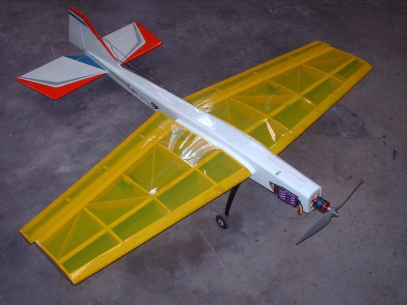 Trainer / Night Flyer : My own design wing on a second-hand used fuselage. The wing also contained 12 LED's for night flying. Four channels [ailerons(1), elevator(1), rudder(1), throttle(1)] SOLD |