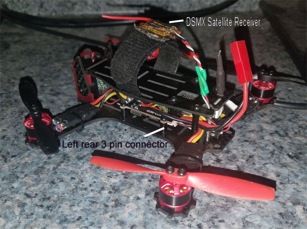 Eachine Racer 250 Quadcopter - Moving to Texas - Gave away with Penguin I upgraded this throughout from the stock version. The bottom photo to the left shows the 'exploded' view of all the electronics. I have small connectors for each major component (video transmitter, HD - DRV camera, RC receiver) so they can easily be removed for any electronics repairs or replacements. The Fusion Vortex F1 flight controller was on sale for $5 at HobbyKing (plus many hours of Internet research and wiring, and circuit tracing with an oscilloscope). It includes an OSD and barometer for altitude sensing. Eachine Racer 250 Quadcopter body - LC filters, 5V regulator, PDB, LEDs and LED controller built into main board Immersion RC Fusion Vortex F1 FC/OSD, with barometric pressure sensor, 5V input - see this page or this thread at RCGroups to learn how to use this FC by itself - two ARM processors; #1 = FC, #2 = Immersion OSD - flashed & configured with BetaFlight 3.1.7 via USB - uplink commands from DSMX receiver via PPM BG2204 2300kv motor (x4), soft mounted on rubber o-rings upgraded to higher capacity ESCs to allow flying on a 3S or 4S lipo - BL20A BlHeli 20A ESC, no BECs (x2) - reflashed with latest BlHeli and configured via flight controller pass-through - ZTW Spider Series 18A ESC 2-4S, with SimonK, no BECs (x2) - reflashed to BlHeli via Arduino USBLinker - configured BlHeli via flight controller pass-through Orange 617XL DSMX PPM Receiver Racer 250 600mw 5.8Ghz Video Transmitter with OSD HD 1080P camera + DVR combo - this HD camera/DVR combo originally came with the Eachine V-Tail 210 quadcopter - video from my front yard, video from the RCMB flying field |
