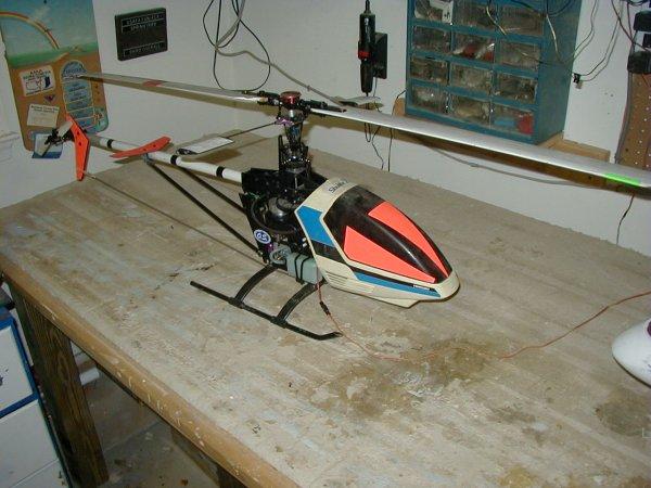 Hirobo Shuttle ZXX - I traded this chopper with engine, servos, and Telebee heading hold gyro to someone for two OS 91 VR-DF engines, three tuned pipes, two complete Dynamax fan units, and most of the pieces to a third fan unit. These were all installed in my SR-71. OS .32, five channels SOLD |