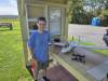 5.5 Foot Wingspan FPV Pink Wing - Moving to Texas - Donated to RCMB Member This is yet another flying wing made from pink foam. This one was made from the remainder of all the pink foam left over from my club group build. It is powered by a 450 outrunner and 50A ESC. This has a 800 TVL camera and 800mw video transmitter for FPV. The new owner at RCMB is shown in the bottom left photo. We flew it together with his recently purchased FPV goggles / video display at our club's RC social on the evening of 28 August 2025. I hope this leads him to many years of fun FPV flying. |