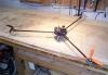 FLOWN - retired The first two multicopters I built were TriCopters with four HK 401B gyros each. These were made before multi-copter controllers became readily available, and we used CCPM helicopter mixing in computer radios to control the motors through gyros on each arm. The larger Tricopter was powered by three TowerPro 3520 outrunners and 50 amp ESCs, and the smaller Tricopter was powered by three 2410-09 outrunners and 18 amp ESCs. The top picture shows the small TriCopter with its carbon fiber body and booms. They both used four gyros and identical mixing, with slightly different gains on the gyros and exponential settings. Check out this page for full details on the gyro setups and radio mixing that were used with independent gyros. |