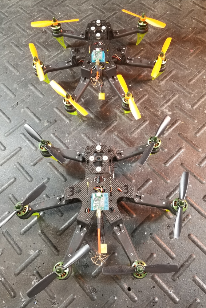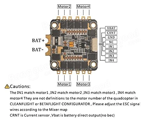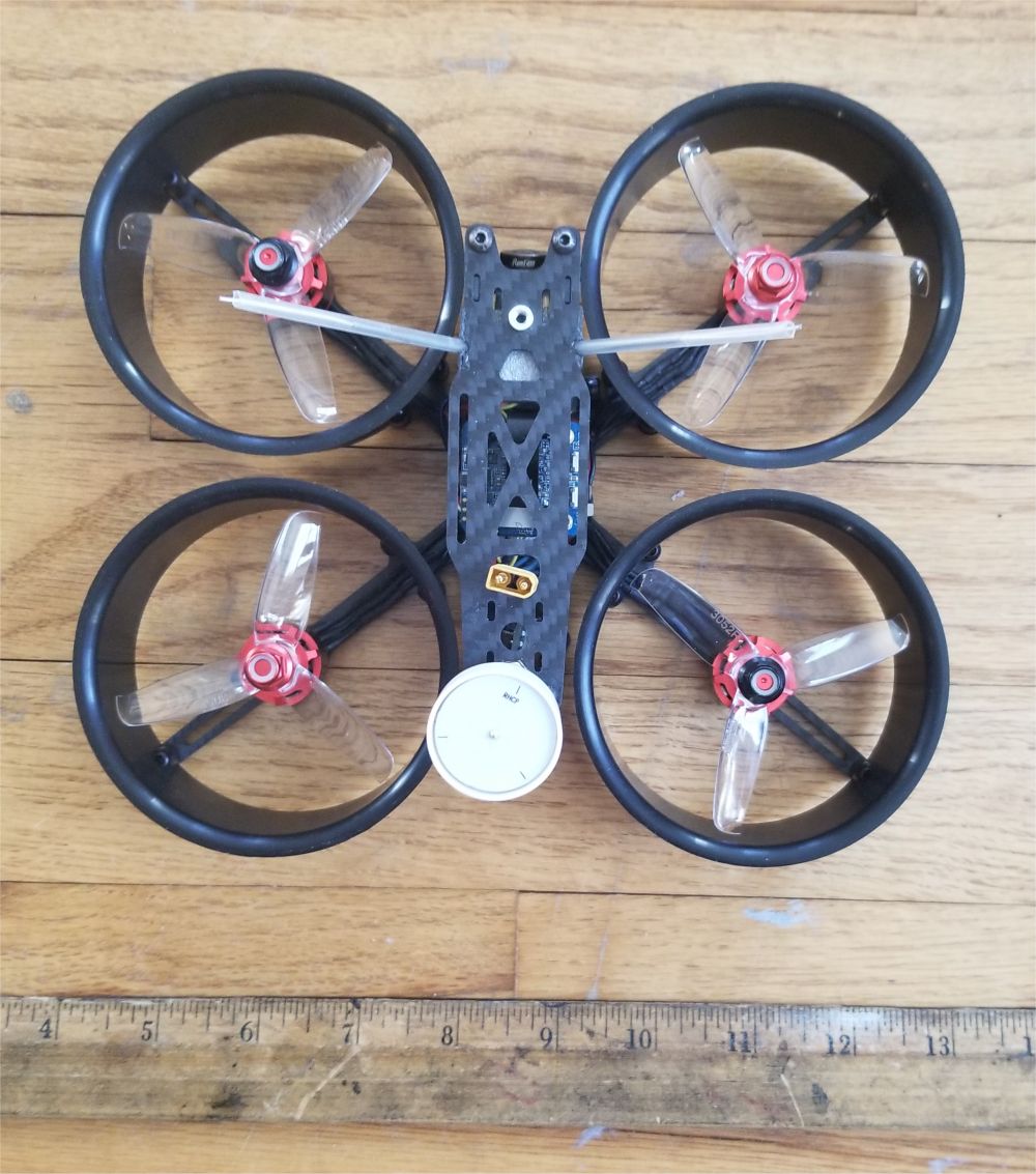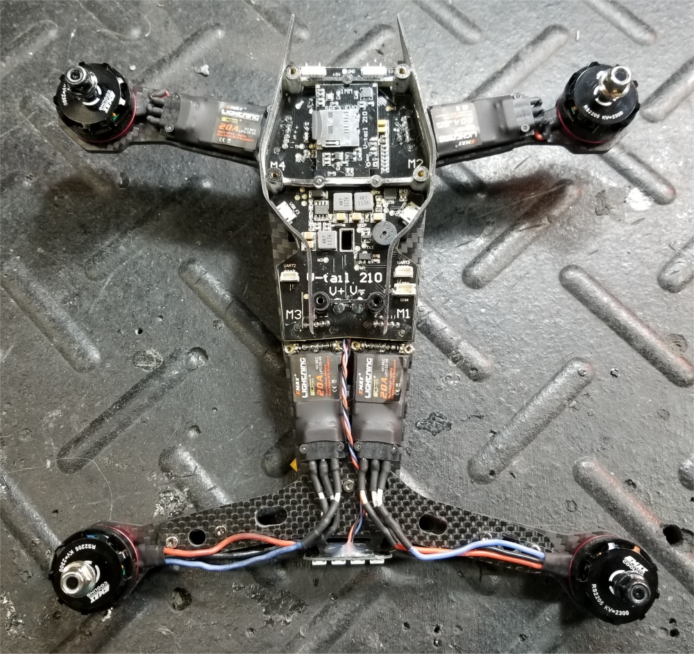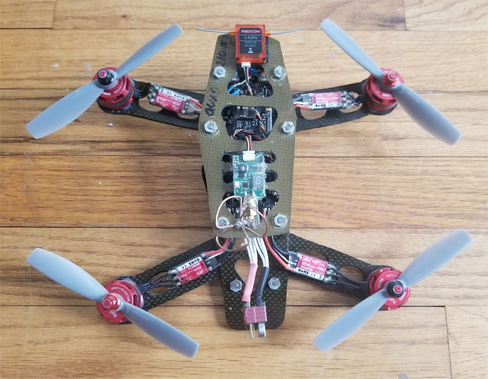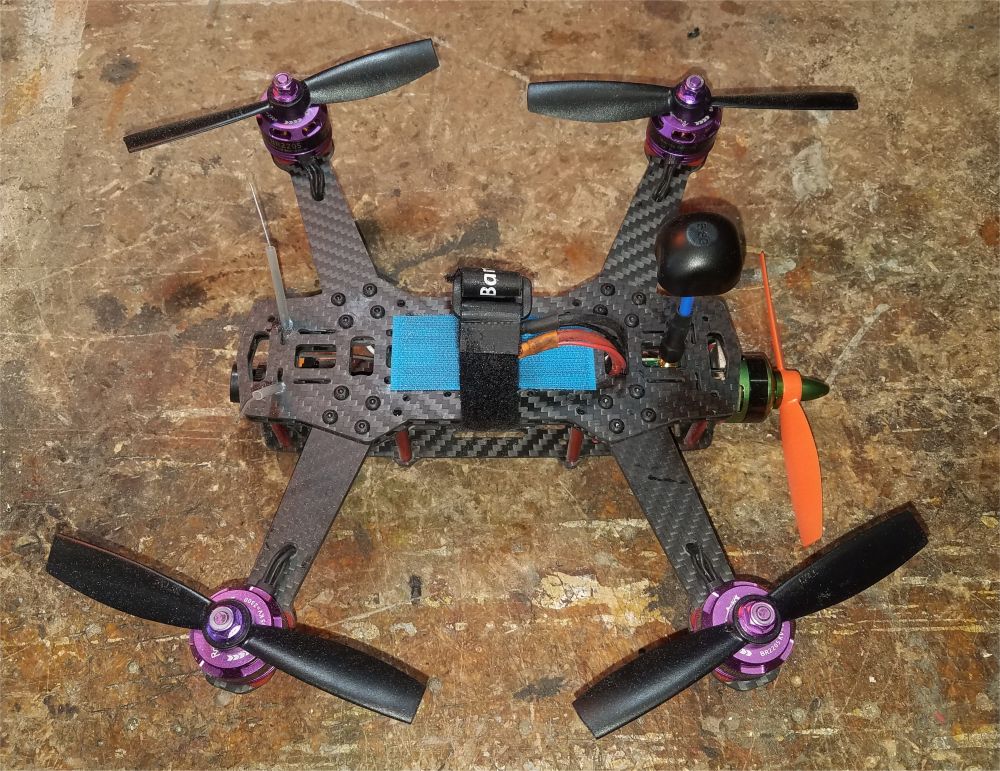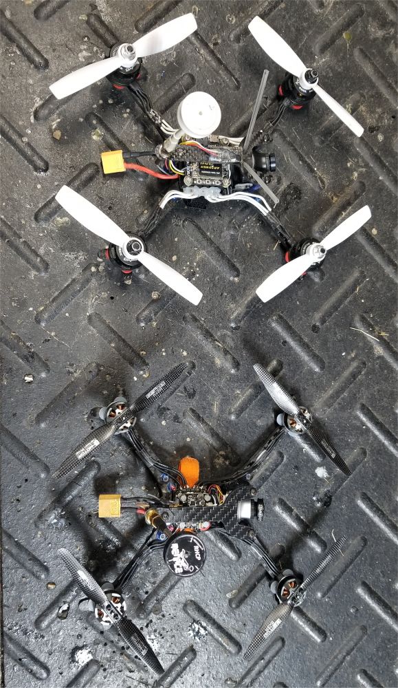 Floss 5" w/ Carbon Fiber Props - FLYING - FPV Micro F3 Flight Controller w/ DSMX receiver & 4x20A ESC (20 mm x 20 mm) - flashed and configured BetaFlight 3.2.3 via USB - built-in DSMX receiver on main board; range is terrible so this has been turned off - special resource setup to allow external receiver : see here for details - 20 Amp 4-in-1 ESC on second board - two receiver configurations have been flown: - Crossfire Nano Receiver via UART2 TX/RX resource change - Orange 617XL DSMX PPM Receiver via LED_STRIP resource change (active) Eachine 600mw 5.8 GHz Video Transmitter Runcam Racer camera, with voltage + timer OSD 1804 motors, 5x3 carbon fiber props Floss 5" w/ Three Bladed Props - FLYING - FPV Micro F3 Flight Controller w/ DSMX receiver & 4x20A ESC (20 mm x 20 mm) - flashed and configured BetaFlight 3.2.3 via USB - built-in DSMX receiver on main board; range is terrible so this has been turned off - special resource setup to allow external receiver : see here for details - 20 Amp 4-in-1 ESC on second board - two receiver configurations have been flown: - Crossfire Nano Receiver via UART2 TX/RX resource change - Orange 617XL DSMX PPM Receiver via LED_STRIP resource change (active) Eachine 600mw 5.8 GHz Video Transmitter Mista Micro camera 1806 motors, three bladed props |