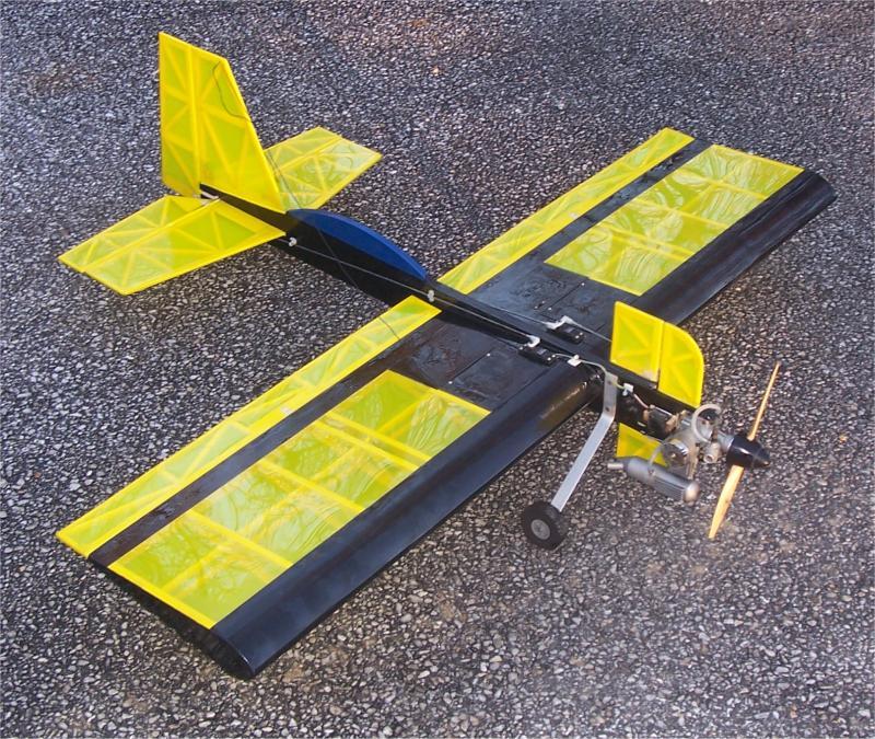 Profile Hots : I bought this at one of our club auctions. MVSS .46, four channels [ailerons(2 servos), elevator(1 servo), rudder(1 servo), throttle(1 servo)] FLYING |