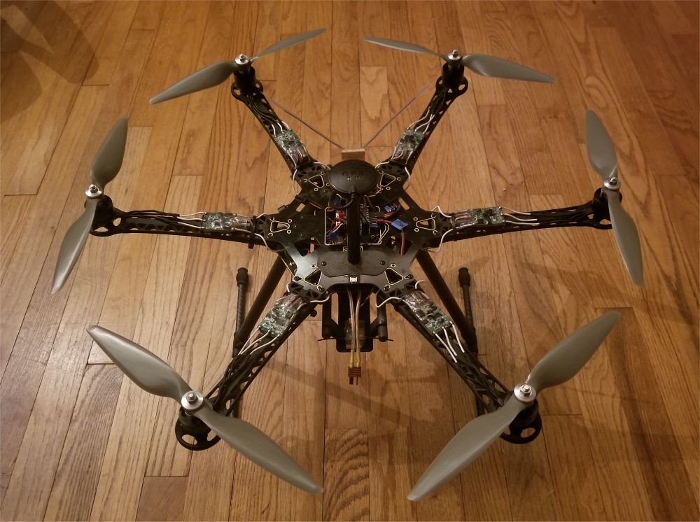 Hexacopter 2205 #1 & Hexacopter 2205 #2 - HobbyKing had a great deal for $5 each on 2205-2350 motors with 30A ESCs built in. I bought enough of these motor + ESC combinations to build two hexacopters, and I had a couple spares left over for another project. By hunting for special deals at various on-line stores, I was able to keep the total cost for these racing and acrobatic hexacopters with full FPV at less than $90 each. FLYING - FPV Spedix 250 hexacopter frame Flip32 F1 flight controller all-in-one (AIO), MWOSD 2.0 SW - barometric pressure sensor for altitude - current and voltage sensors - flashed and configured Betaflight 3.1.7 via USB - uplink commands from DSMX receiver via PPM - COM1: MWOSD (shared with USB) - flashed and configured MWOSD 2.0 via USB with MWOSD 2.0 Configurator Multistar Elite 2205-2350 motor with built in 30A ESC CW (x3) Multistar Elite 2205-2350 motor with built in 30A ESC CCW (x3) - configured ESCs with BlHeli via FC pass-through Orange 617XL DSMX PPM Receiver Eachine TX526 25/200/600mW 5.8GHz video transmitter 1000 TVL camera GEP power distribution board LC filter, supplies power to flight controller, video transmitter, camera |