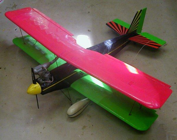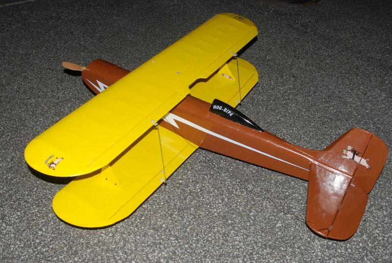 ACE Hog Bipe : Built from kit, built from start for electric power. Tower Pro 4130 outrunner with a 70A ESC. Four channels [ ailerons(2 servos), elevator(1 servo), rudder(1 servo), throttle(ESC) ] FLYING |