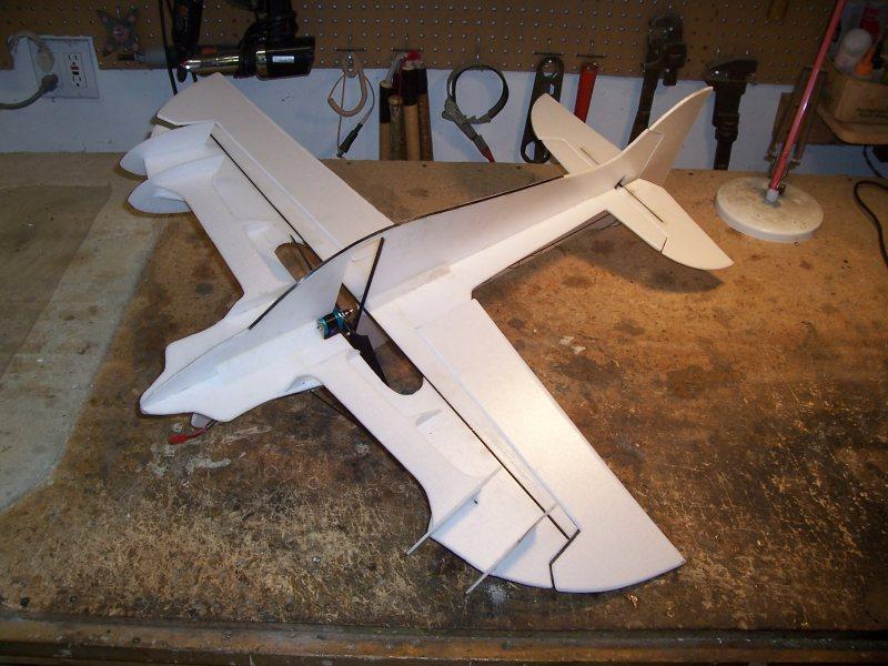 Morback 4D : Built from plans on-line, with some modifications to make it lighter. Variable pitch prop (VPP) for reverse thrust. Himax HC2812-1080 outrunner, 17A ESC, VPP, six channels [ ailerons(2 servos), VPP(1 servo), elevator(1 servo), rudder(1 servo), throttle(ESC) ] FLYING |