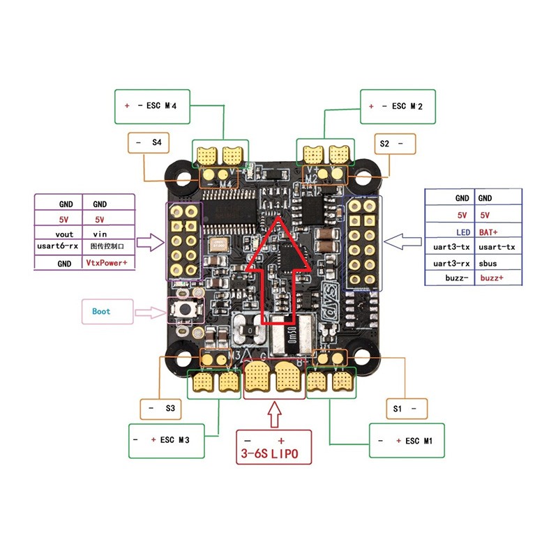 Long Range 10" Quadcopter - FLYING - FPV Homemade carbon fiber 10" frame - GoPro 3D printed mount - 10x7 propellors Aikon F7 V2 Flight Controller Beitian BN-220 GPS receiver Racestar 35A BlHeli-S 4-in-1 ESC, DSHOT 600 for control, firmware J-H-15, pinout - reflashed with bi-directional telemetry DSHOT BlHeli-S JazzMaverick 16.73 via flight controller pass-through Emax MT3506 650kv motors (x4) - make sure to set the motor data correctly for RPM filters; 3506 motors = 14 poles Crossfire Diversity Nano Rx - use TBS LUA scripts to configure Rx output channels - Rx channel 1 & 2 : long range uplink control and telemetry downlink Runcam Split V2 - 1080P 60FPS HD video recorder on-board Eachine TX1200 5.8GHz Video Transmitter, manual - controlled via SmartAudio from flight controller LC filter, supplies power to video transmitter + Runcam camera |