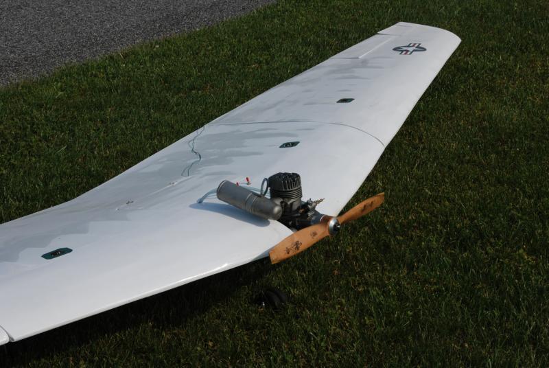 X-29 Canard: Forward-swept wing with canard; this plane has taken many, many forms from the original twin .40 push-pull. OS 61 FSR, five channels (canard = elevator, main wing = elevons) [elevator(1 servo), elevons(2 servos), rudder(1 servo), throttle(1 servo)] FLYING |