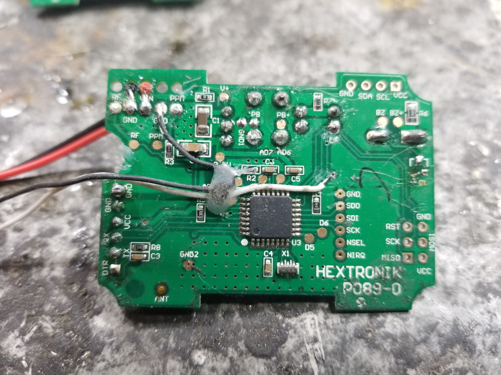 VTx was de-soldered from board; this old VTx did not have enough RF