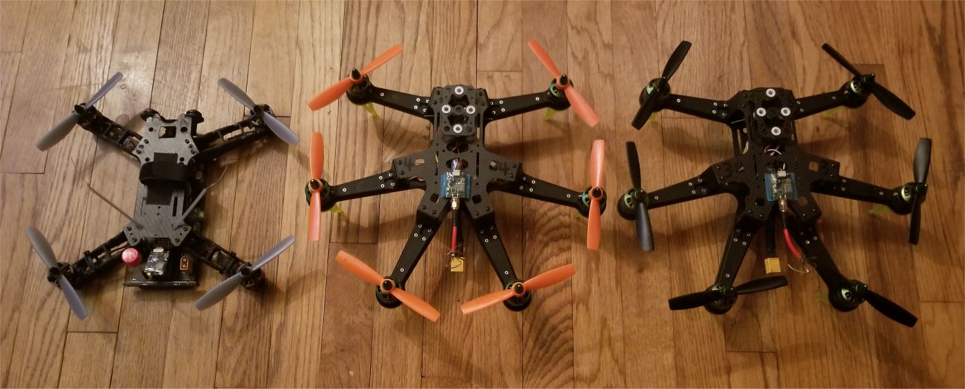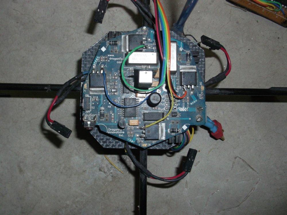 The original Draganfly quadcopter and its control board have been around for 20+ years. It uses three rate gyros, a custom circuit board with a PIC running custom code, and four FETS to drive four brushed motors. It was expensive, but it was all that was available to fly commercially for a long time. You can get orders of magnitude more performance now out of inexpensive brushless motors, BESCs, and off the shelf flight controllers, but it is still fun to play with these older electronics.