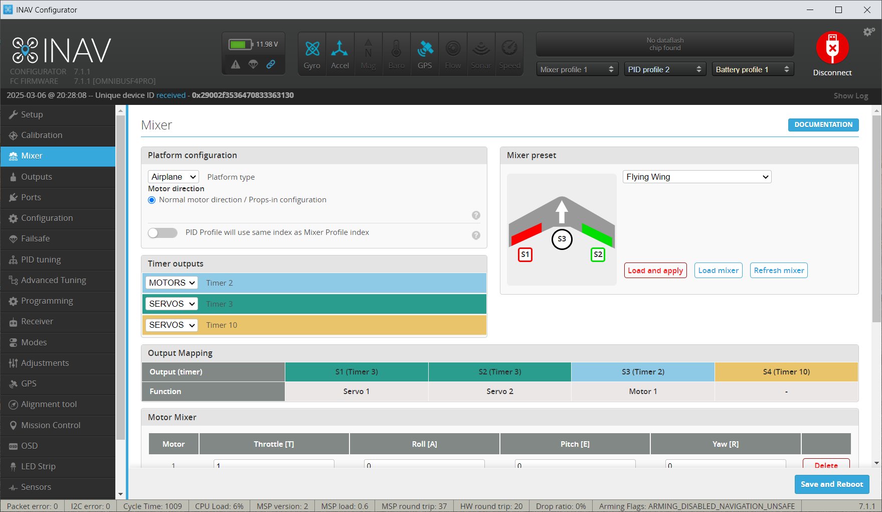 ![]() iNav Configurator Mixer Tab for Timer Setup |