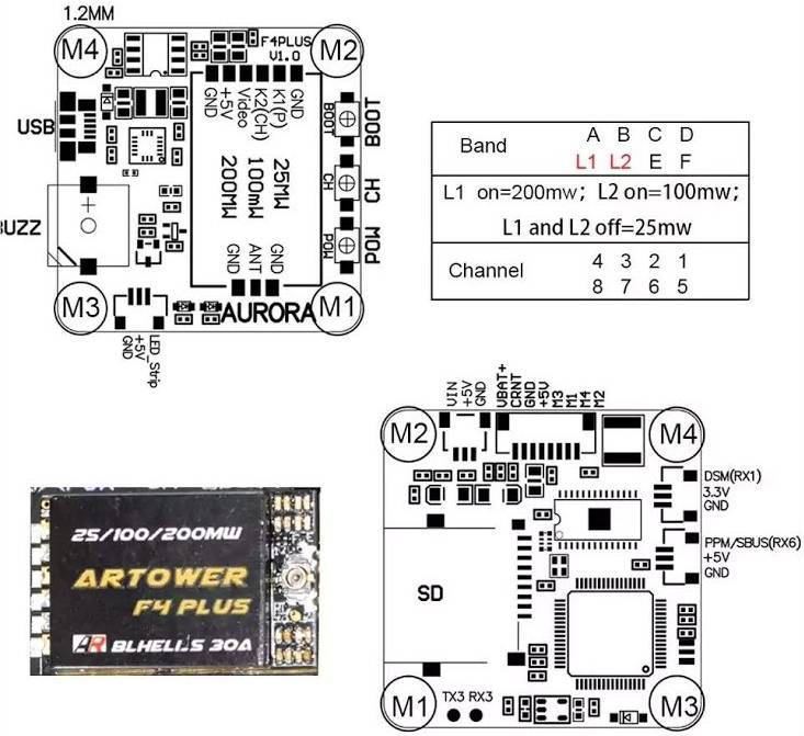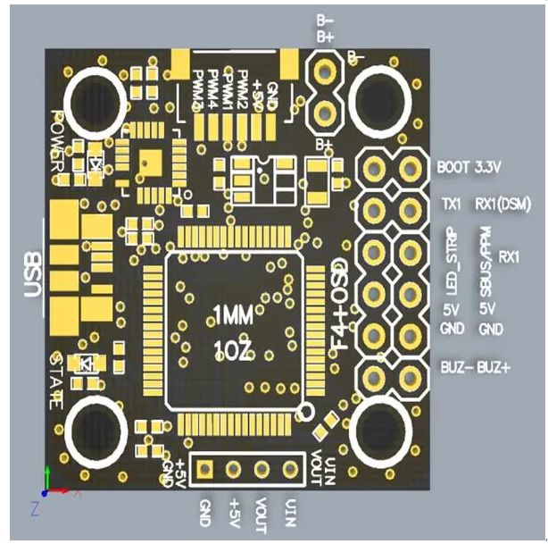 the 5V regulator. Target "OMNIBUSF4PRO" is used for ARTower F4 Plus, supports SD card - 9x IO by default: 1.5 COM ports (RX1, TX3, RX3) + 4x PWM + 1x PPM + 1x LED_STRIP - LED_STRIP (B06) has alternate function as TX1 : see ARM Cortex M4 Datasheet, page 63, table 9 - remap B06 in target.h (line 131) from LED to TX1 and remove LED definition (line 261) : this provides 2 complete COM ports : TX1, RX1, TX3, RX3 - TX3 and RX3 could also be used for I2C bus 2 clock and data : I2C2_SCL, I2C2_SDA - PPM (B08) can be remapped as needed if a timer setup can be used that does conflict with other functions. |