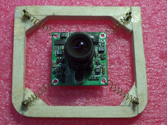 The camera is suspended on springs to isolate it from engine vibration and looks