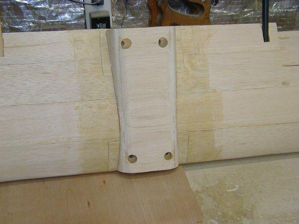 I fiberglassed the main wing center section and attached the cutout from the fuselage. |