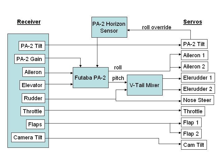 fuselage. I have also installed a Futaba PA-2 to help with flying by video downlink only. |