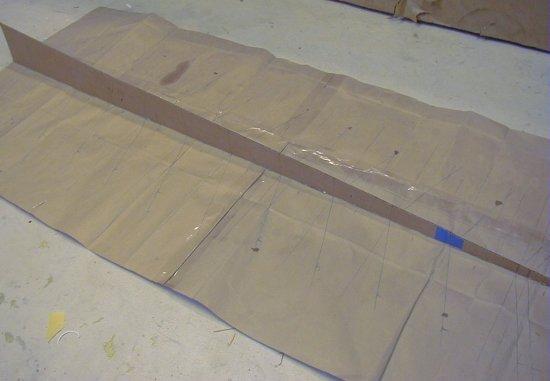 corrugated cardboard jig, and the wing ribs sitting on the spar and running down to the